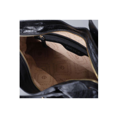 Biker al polpaccio in pelle nera, borchie sul profilo, soletta e fodera in pelle, suola in gomma logata. Una vera lavorazione artigianale 100%...