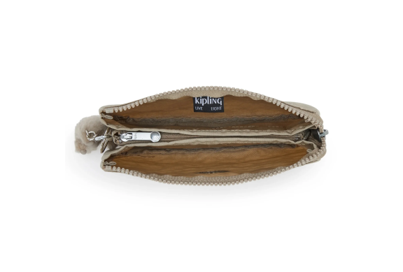 Pochette donna in saffiano oro, tracolla in catena e pelle, pendente removibile sfrangiato, scomparto interno con taschina a zip, chiusura con...