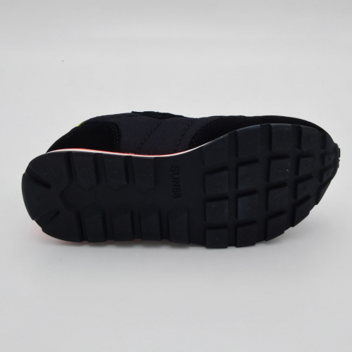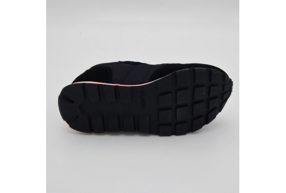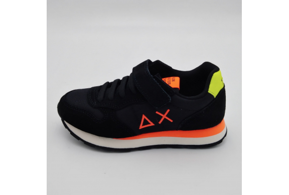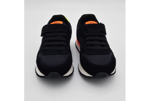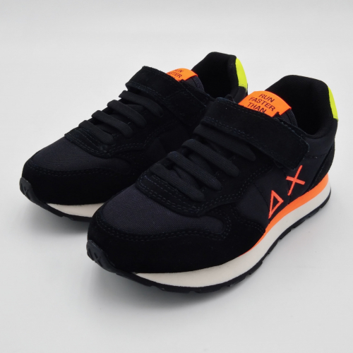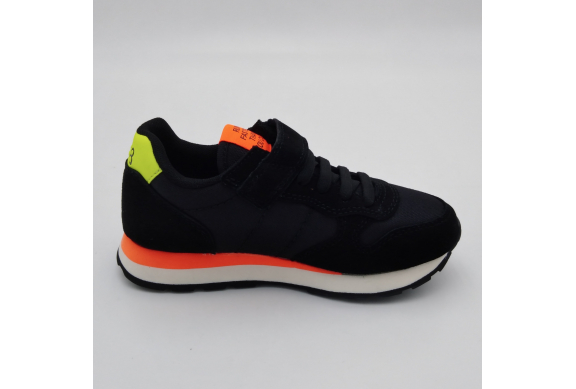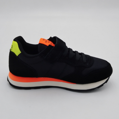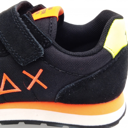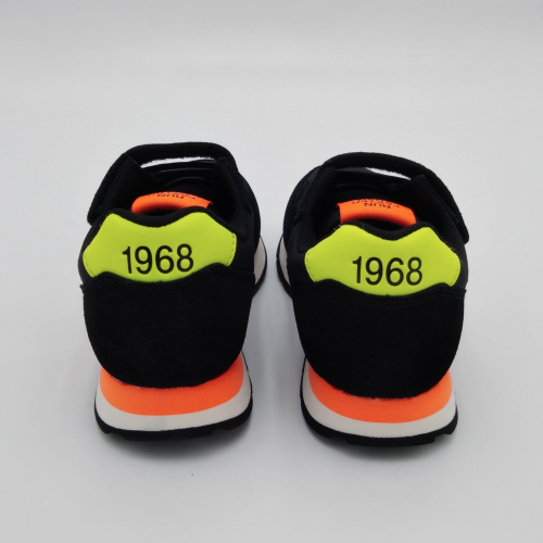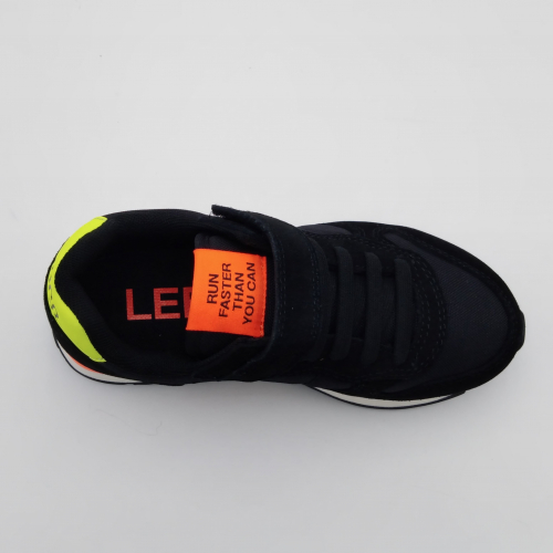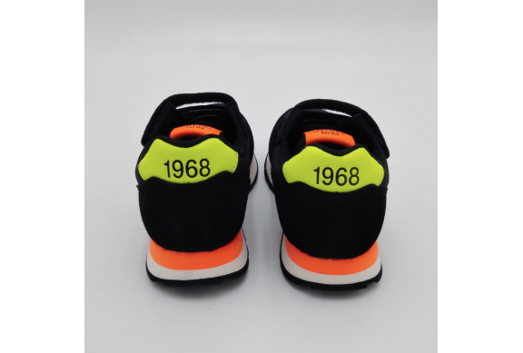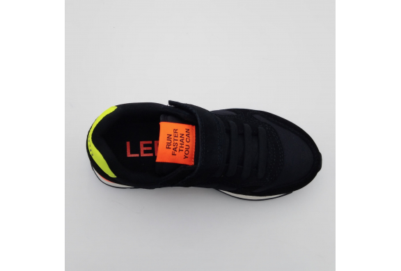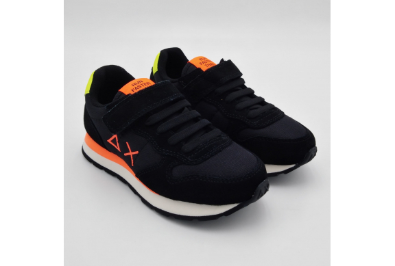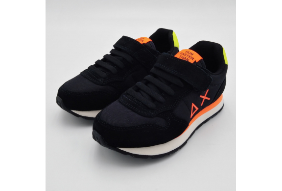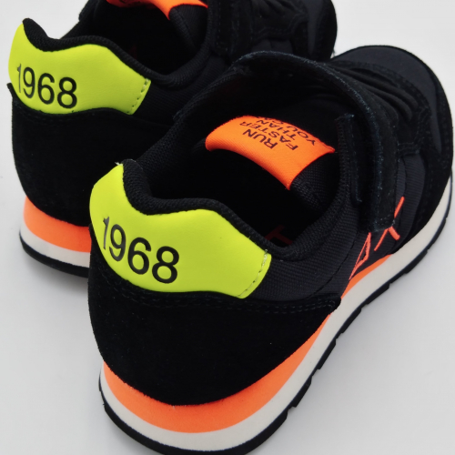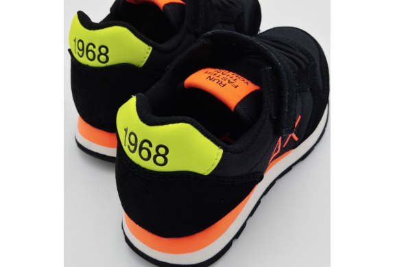 Le Sun 68 Tom Fluo Nylon sono sneaker bambino con lacci elastici e strappo regolabile, facile e veloce da calzare. Tomaia in pelle scamosciata e nylon nero con dettagli fluo. Interno e plantare in tessuto. Collarino imbottito, suola in gomma naturale logata, intersuola in eva, patch fluo sul tallone. Comode e leggere, sono scarpe che donano comfort al piede e sono perfette per uso quotidiano dalla scuola al parco giochi.