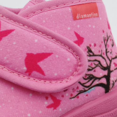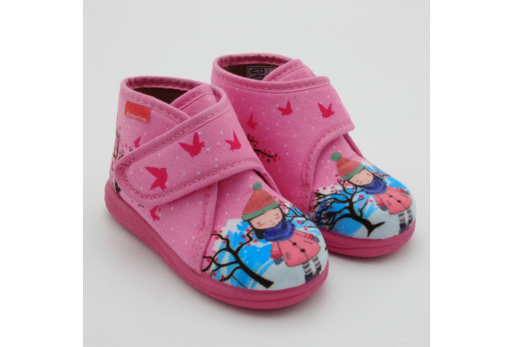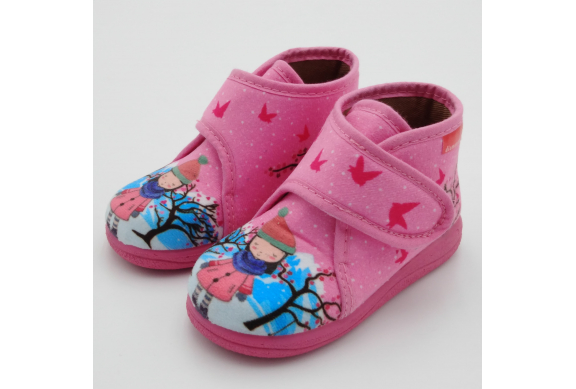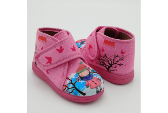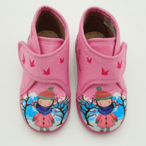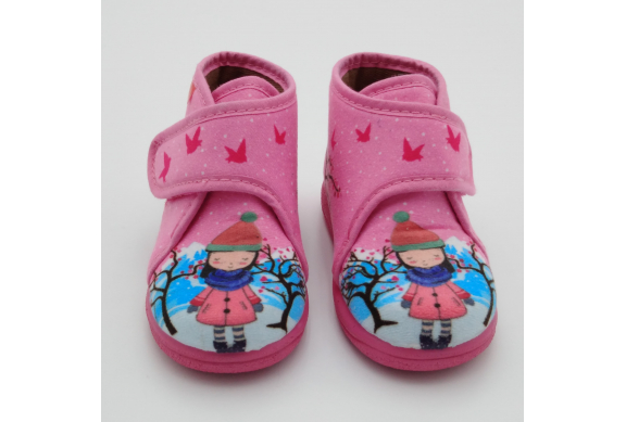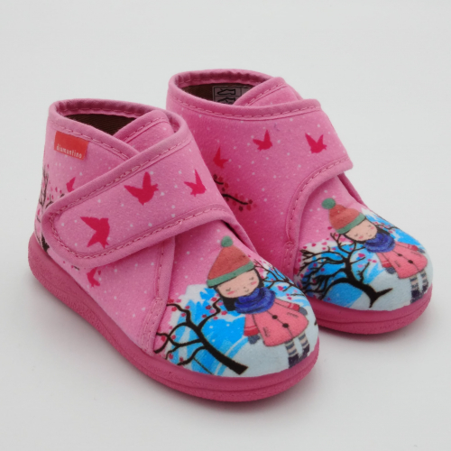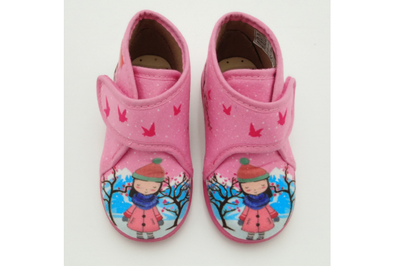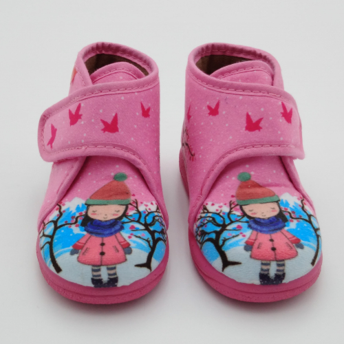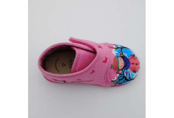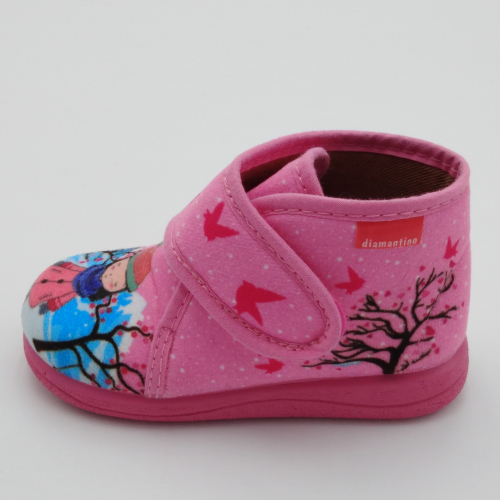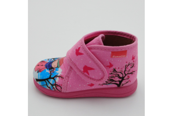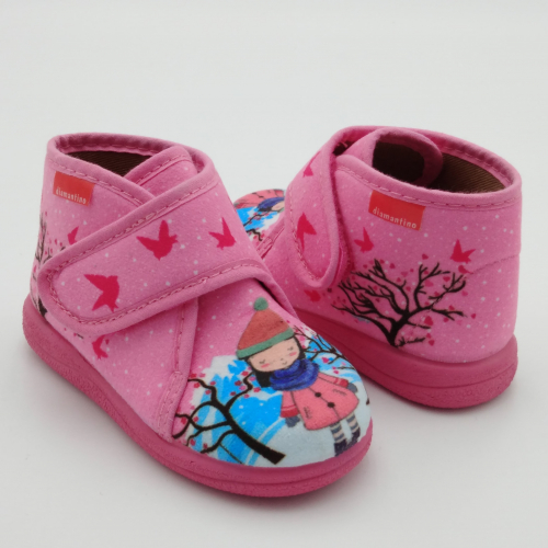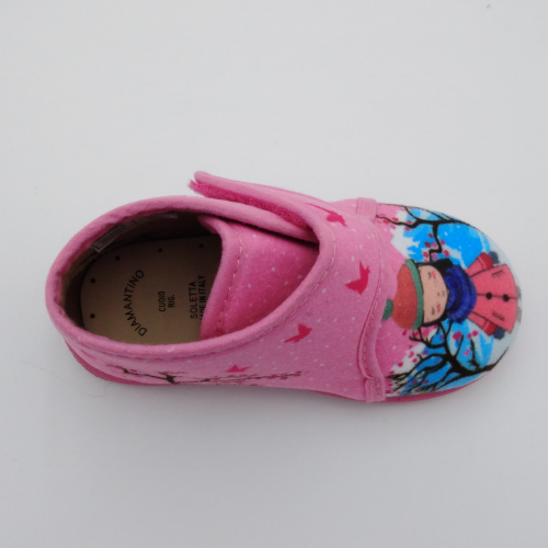Diamantino presenta questa pantofolina primi passi con pratica e veloce chiusura a strappo, perfetta per tenere al caldo i piedini dei bimbi. Viene realizzata in morbido panno rosa con stampa winter Dolly, foderata in cotone, sottopiede estraibile in cuoio e suola in morbida gomma antiscivolo. Tallone posteriore rinforzato e alla giusta altezza per proteggere le caviglie e dare stabilità alla camminata. Ideali per le giornate all'asilo o dai nonni.