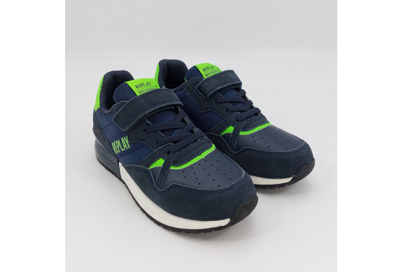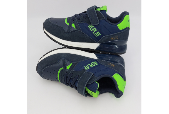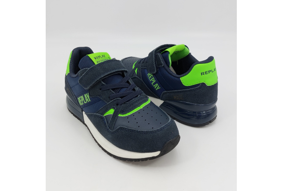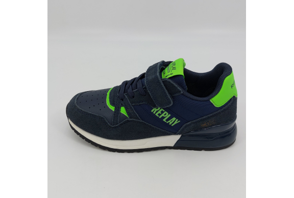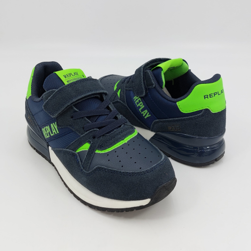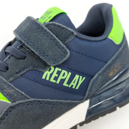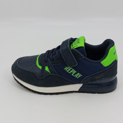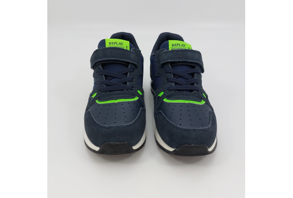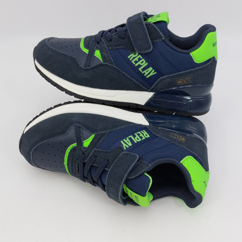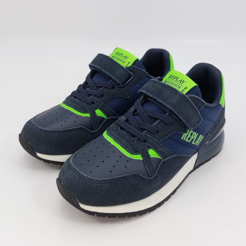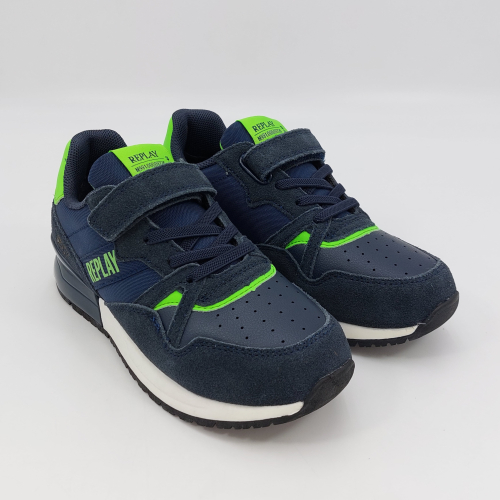 Replay Shoot Jr 3-Sneaker strappo blu verde fluo