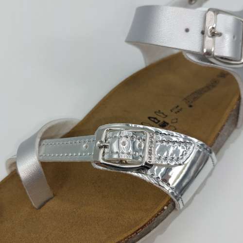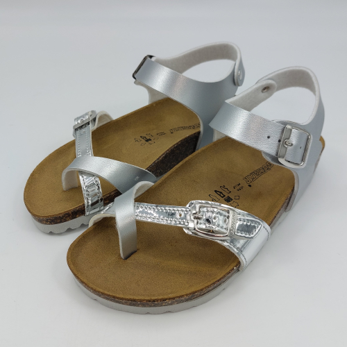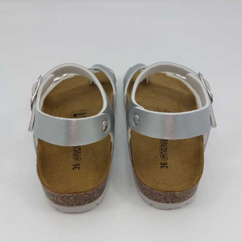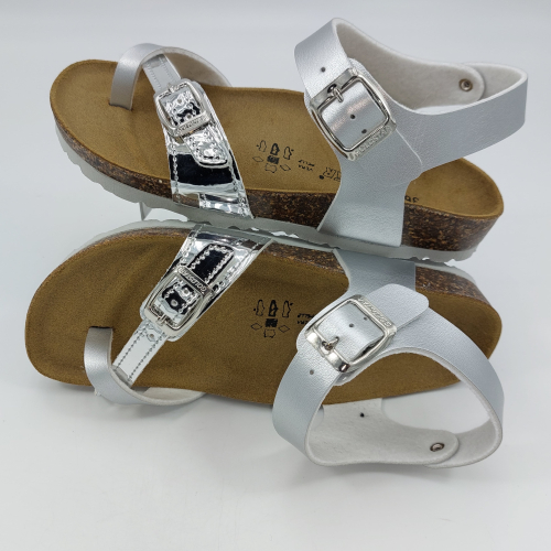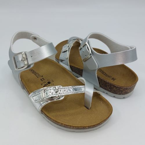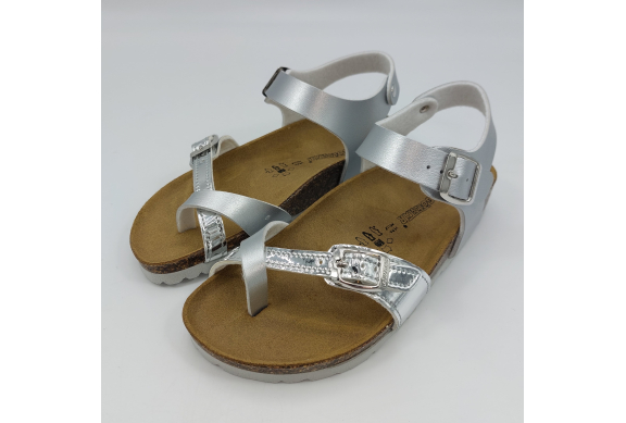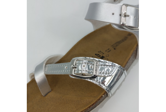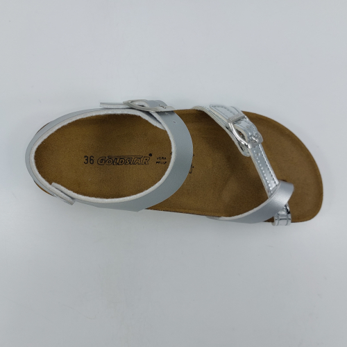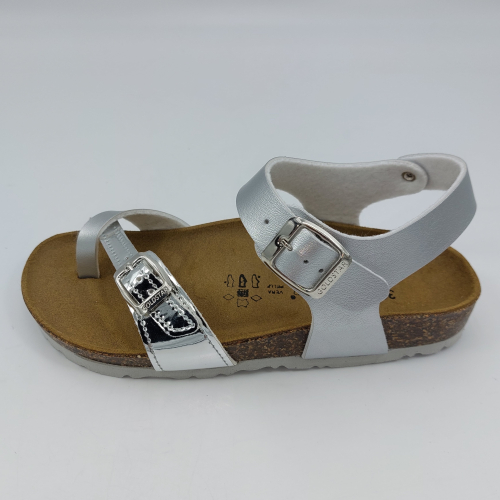 Il modello 1896 di Gold Star ha un delizioso design, la scelta ideale per tutte le bimbe particolarmente dinamiche e attente alla moda! Questa versione laminata e specchio argento, con cinturino per il tallone e attorno all'alluce, fibbie di metallo regolabili individualmente lo rendono adattabile ad ogni tipo di piede. Composto da poche ma essenziali cose di grande qualità. Tomaia in Startek, dermoaffine e facile da pulire, plantare dalla forma anatomica in sughero e lattice, sottopiede in pelle scamosciata, suola in gomma antiscivolo, leggera e flessibile.