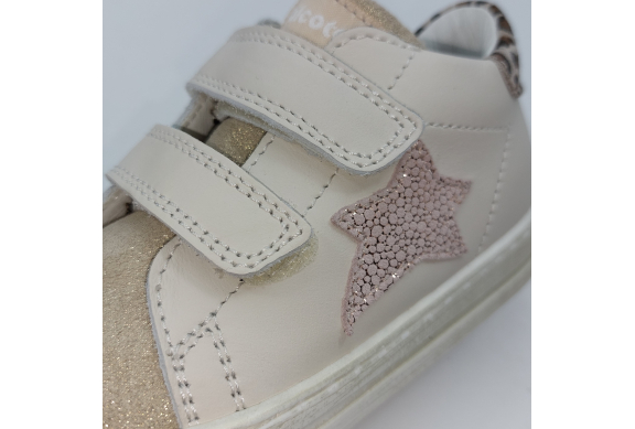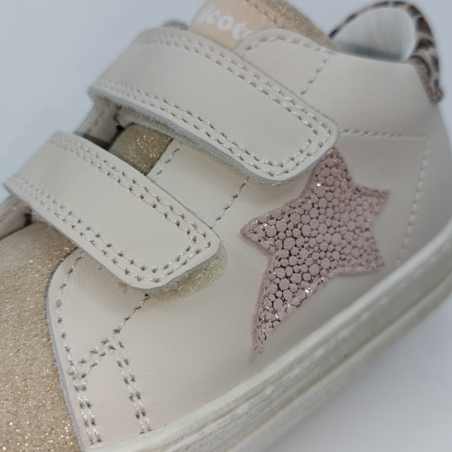 Primi passi in morbida pelle rosa. Chiusura con strappo per una facile calzata. Tomaia in pelle laminata, fodera pelle e plantare anatomico...