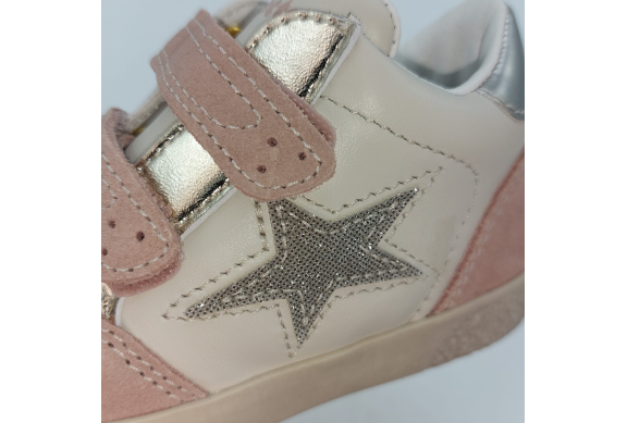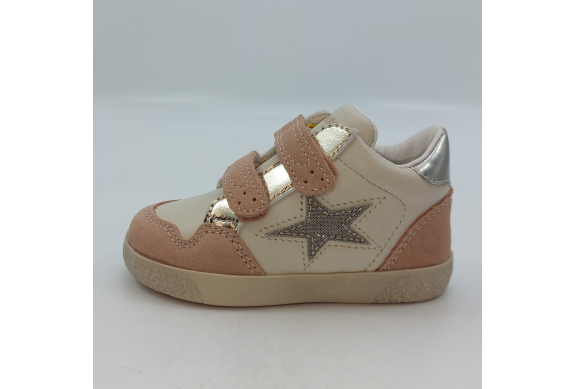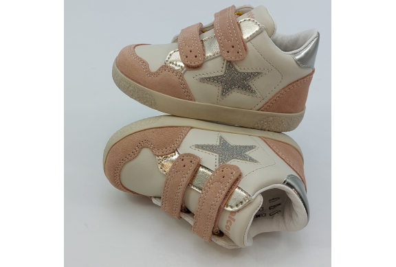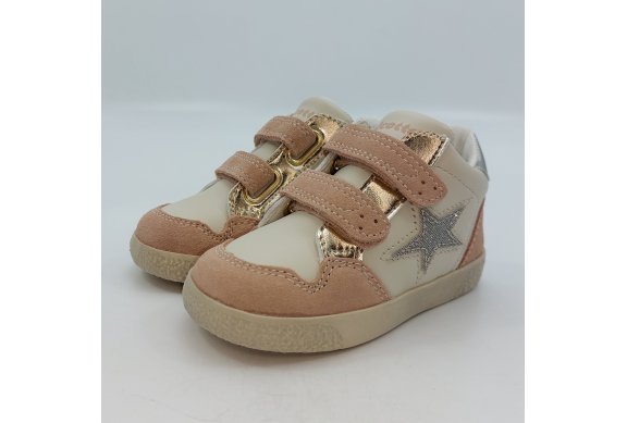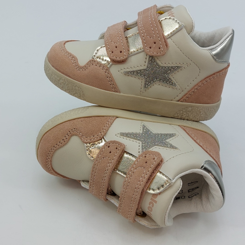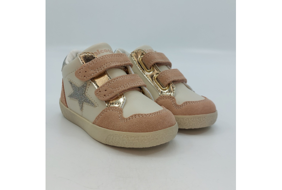 Design sportivo, semplici ma trendy le Falcotto Alnoite High sono una sneaker in pelle color latte, camoscio rosa con dettagli laminato platino e silver. Scarpina primi passi con chiusura a strappo, facile e veloce da calzare, garantisce stabilità alla camminata grazie al plantare anatomico in pelle con effetto sabbia, la suola in gomma antiscivolo e al tallone rinforzato che sostiene la caviglia.