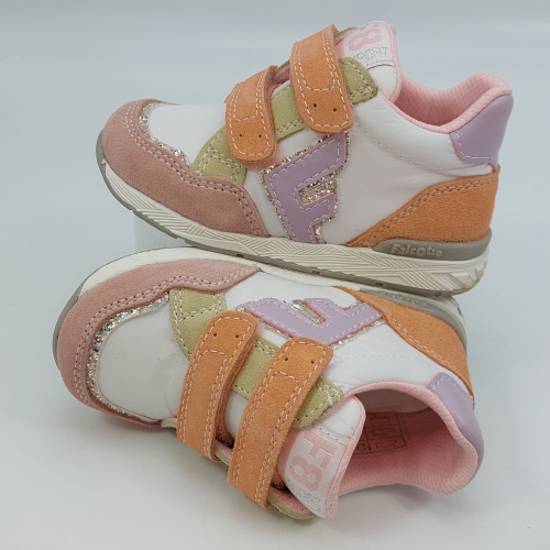 Le Falcotto Fefis sono una sneaker in pelle laminata bianca con cuore stampato rosa. Si calzano velocemente grazie alla doppia chiusura a strappo,...