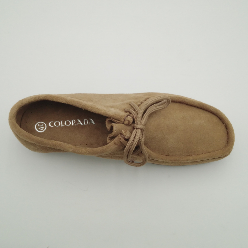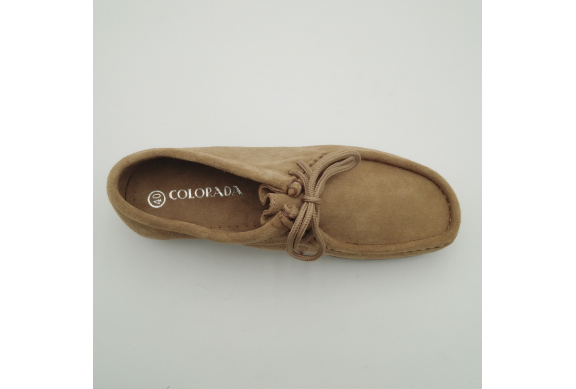 Colorada presenta questo mocassino con lacci, un evergreen dalle linee pulite e semplici, che trascendono le tendenze della moda. Cucito a mano artigianalmente e ispirato alle calzature tradizionali degli indiani d'America. In pelle scamosciata, sfoderata, con struttura tubolare e suola in gomma morbida e flessibile. Una scarpa che abbraccerà i tuoi piedi per tenerli sempre a loro agio.