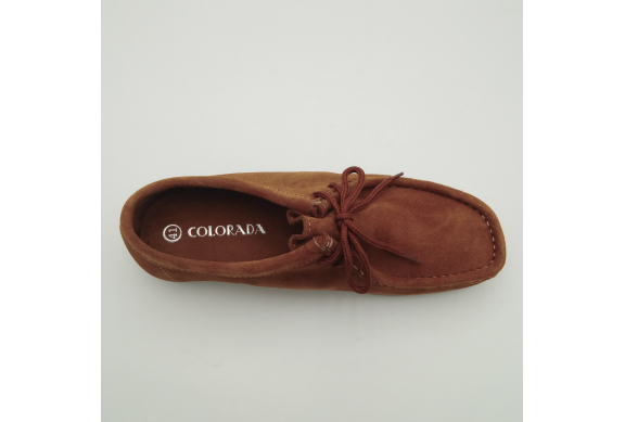 Colorada presenta questo mocassino con lacci, un evergreen dalle linee pulite e semplici, che trascendono le tendenze della moda. Cucito a mano artigianalmente e ispirato alle calzature tradizionali degli indiani d'America. In pelle scamosciata, sfoderata, con struttura tubolare e suola in gomma morbida e flessibile. Una scarpa che abbraccerà i tuoi piedi per tenerli sempre a loro agio.