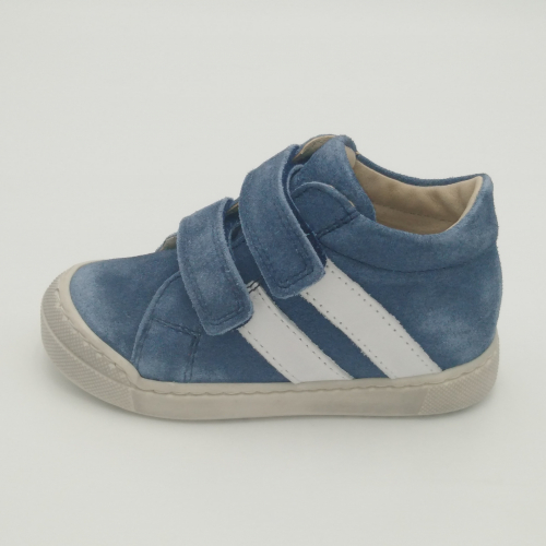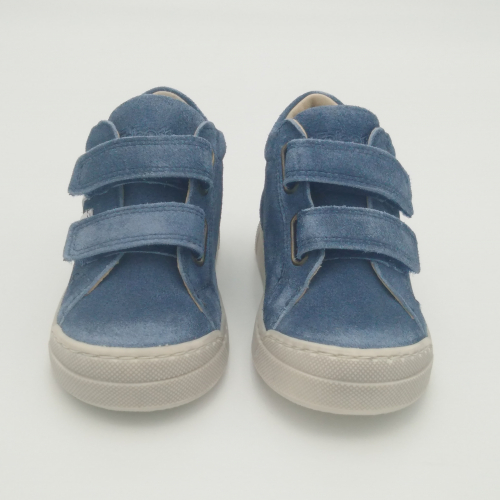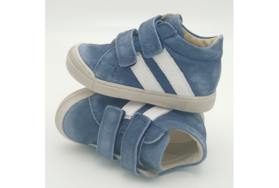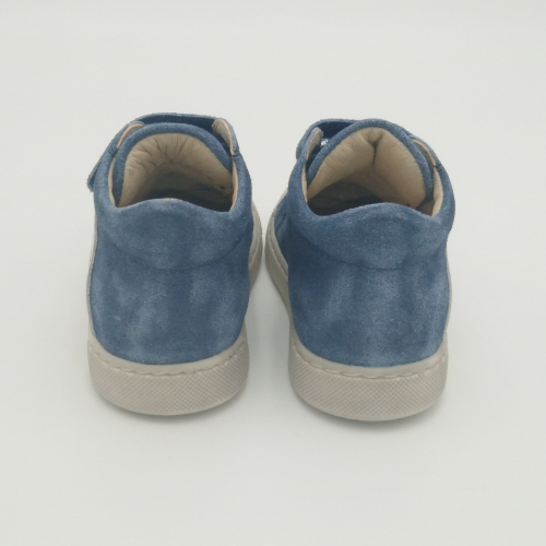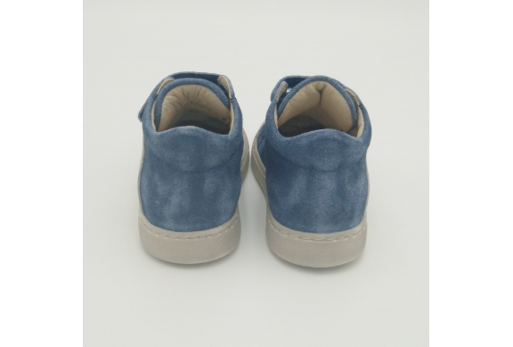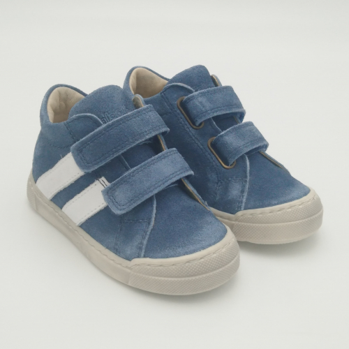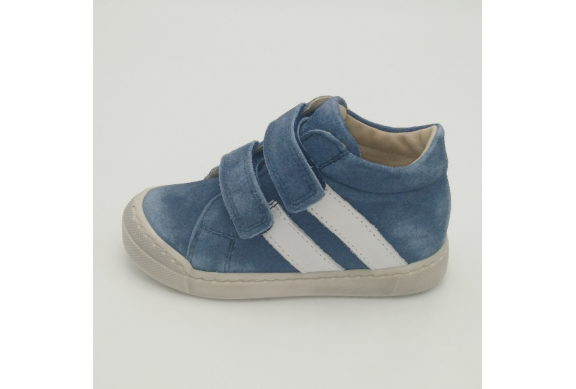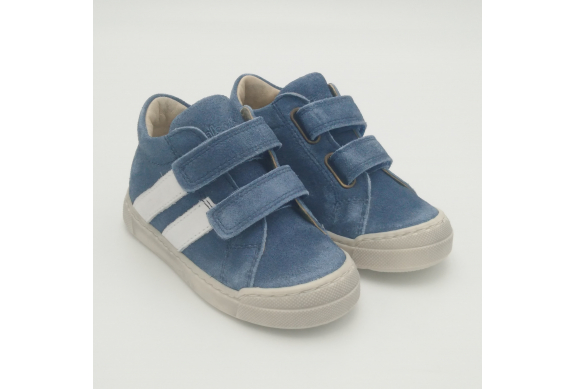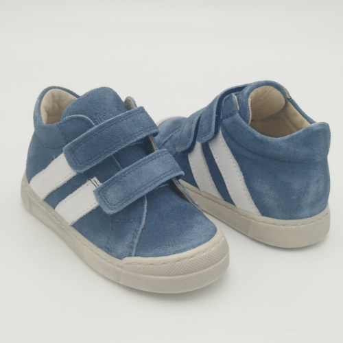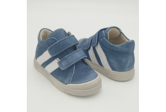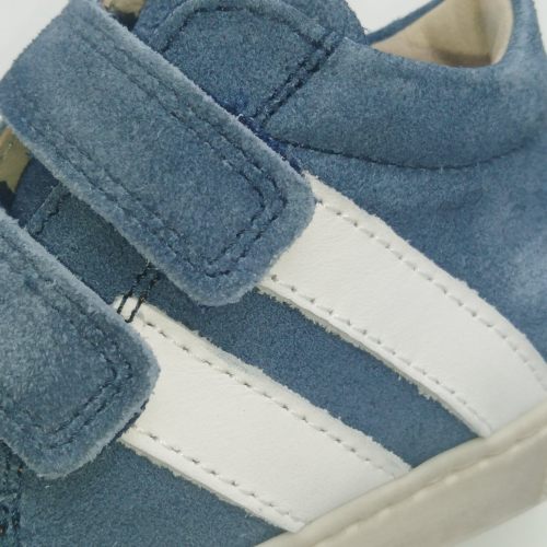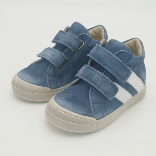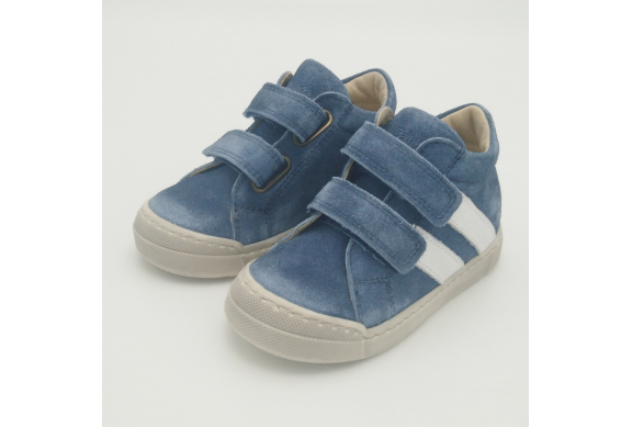 Design sportivo, semplici ma trendy le Falcotto Gazer sono una sneaker primo passo in camoscio invecchiato blu con dettagli bianchi, la suola è in morbida gomma interamente cucita alla tomaia, sporcata effetto vintage. Scarpina primi passi con chiusura a strappo, facile e veloce da calzare, garantisce stabilità alla camminata grazie al plantare anatomico in pelle, la suola antiscivolo e al tallone rinforzato che sostiene la caviglia.
