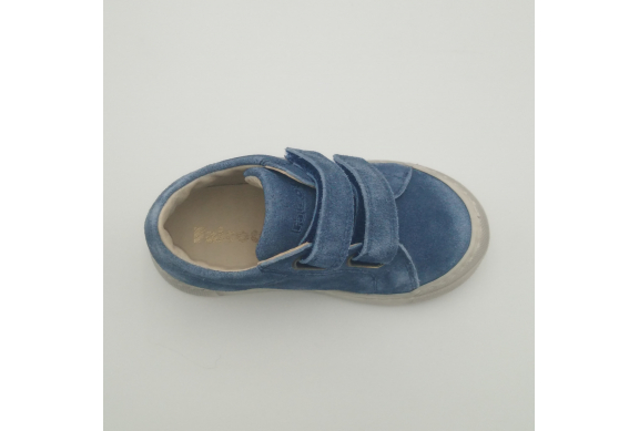 Primi passi in morbida pelle blu. Chiusura con strappo per una facile calzata. Tomaia in nappa, fodera pelle e plantare anatomico "effetto sabbia"...