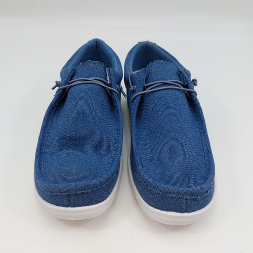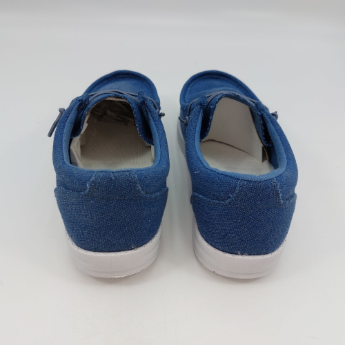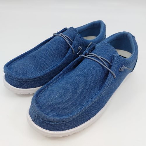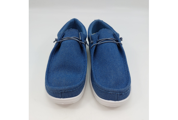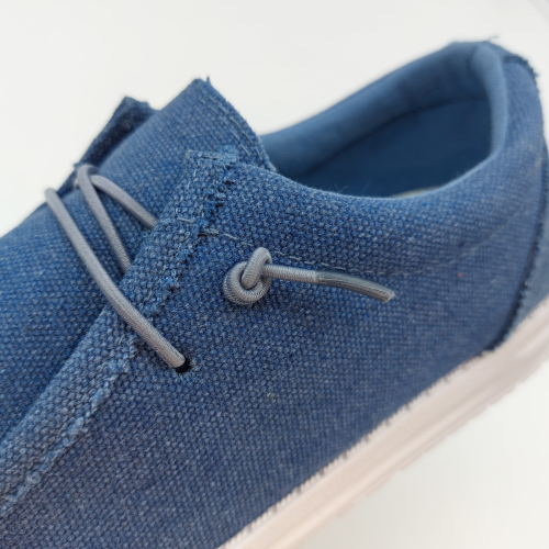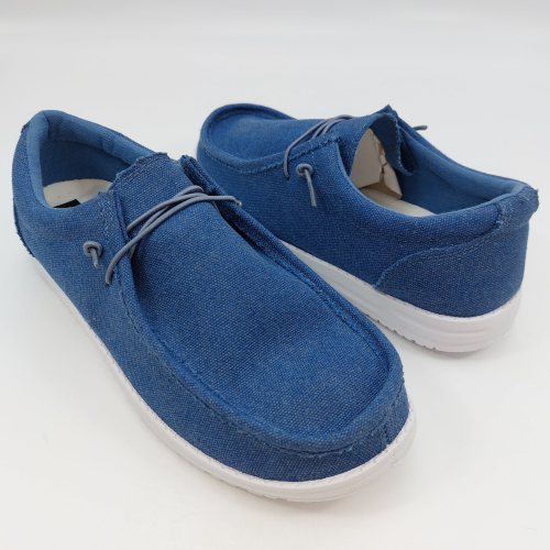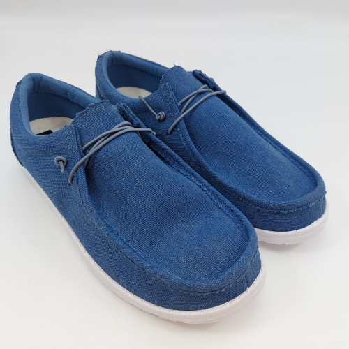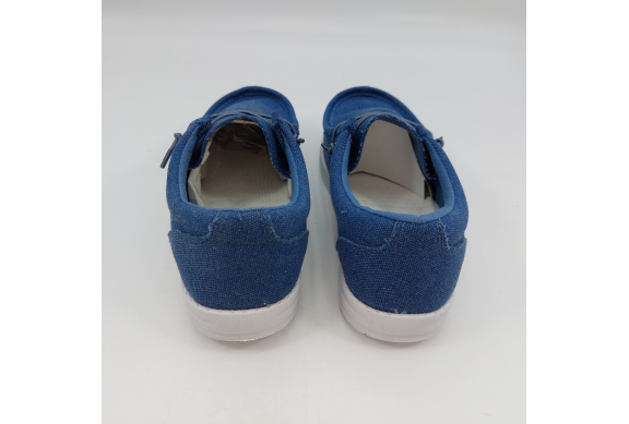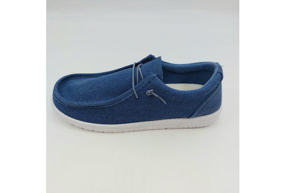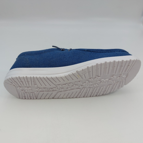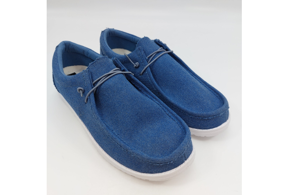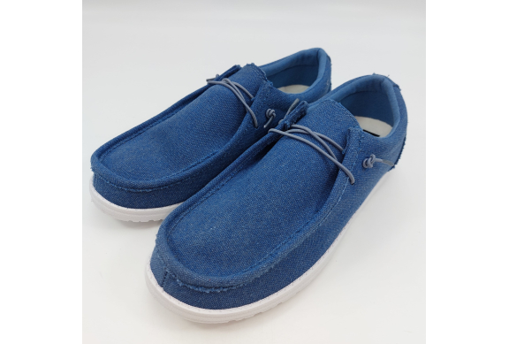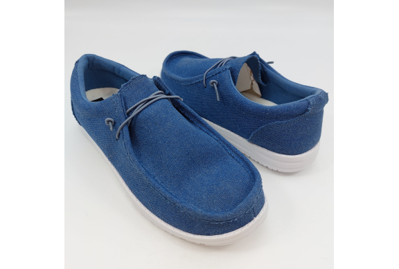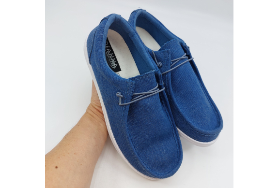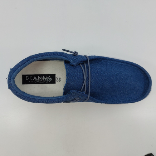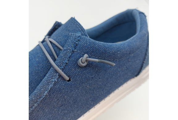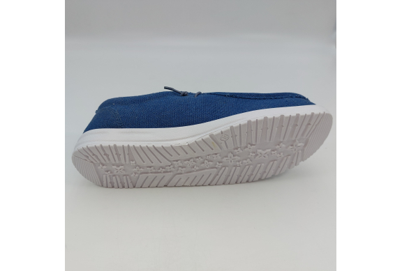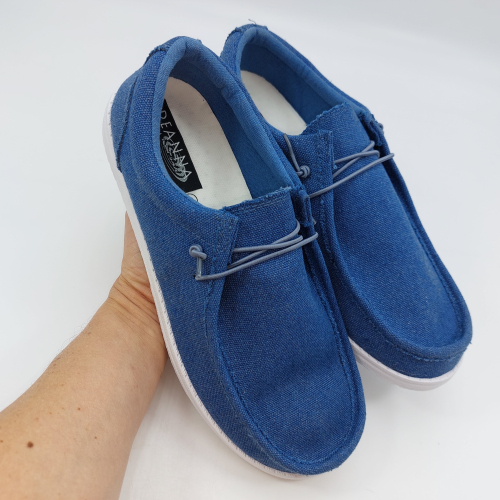 Deanna presenta questa scarpa modello mocassino tipo Dude in cotone blue jeans. Chiusura con lacci elastici regolabili. Fodera in tessuto, con plantare estraibile in tessuto. Suola in gomma ultraleggera e flessibile. Una perfetta combinazione di massimo comfort e ultima moda.