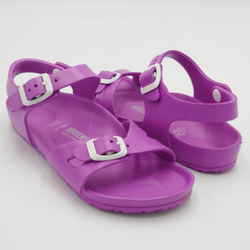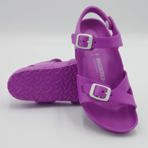Il modello Rio di Birkenstock è un classico sandalo da bambini. Composto da poche ma essenziali cose di grande qualità. Questa versione in pregiata gomma EVA, creata da un pezzo unico, racchiude in se molte caratteristiche positive. Priva di sostanze nocive, dermoaffine, resistente, ultraleggera e lavabile, fibbie regolabili adattabili ad ogni tipo di piede. Tutto rigorosamente Made in Germany