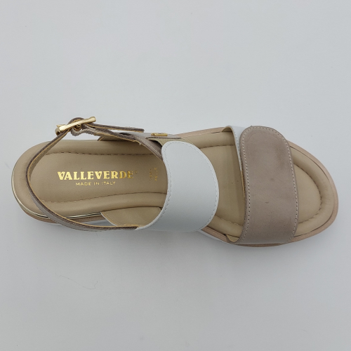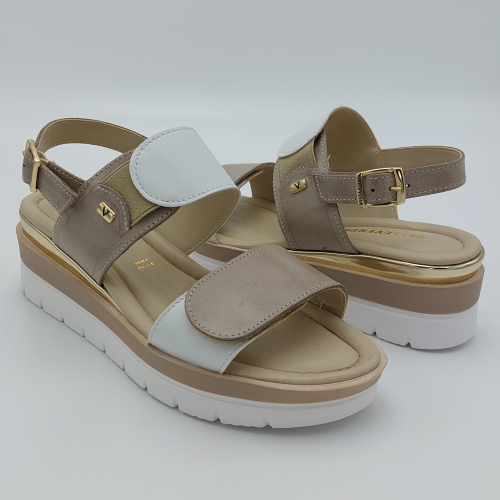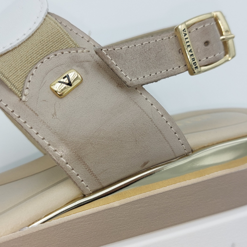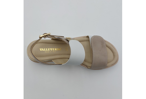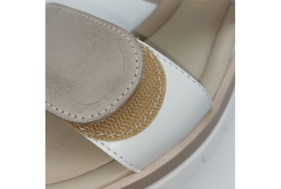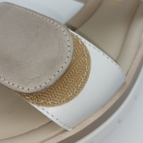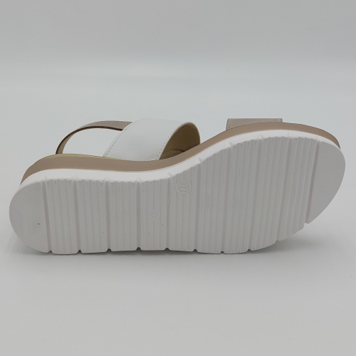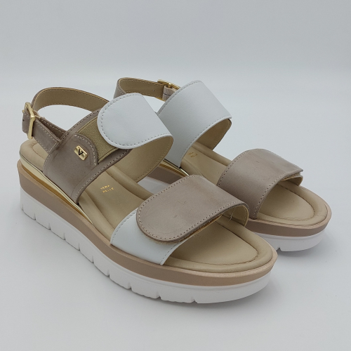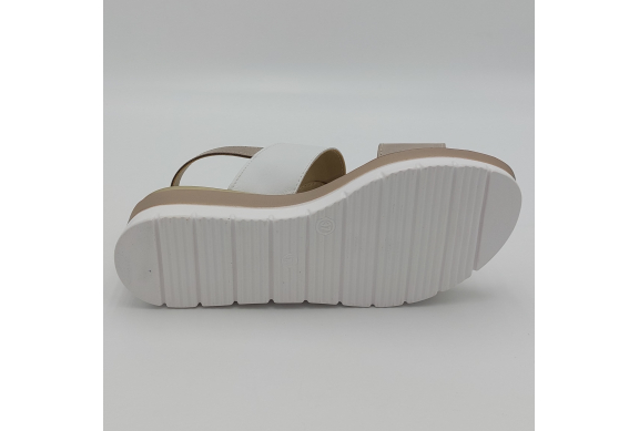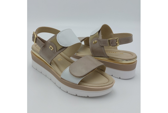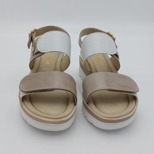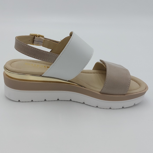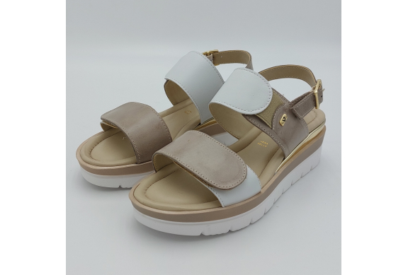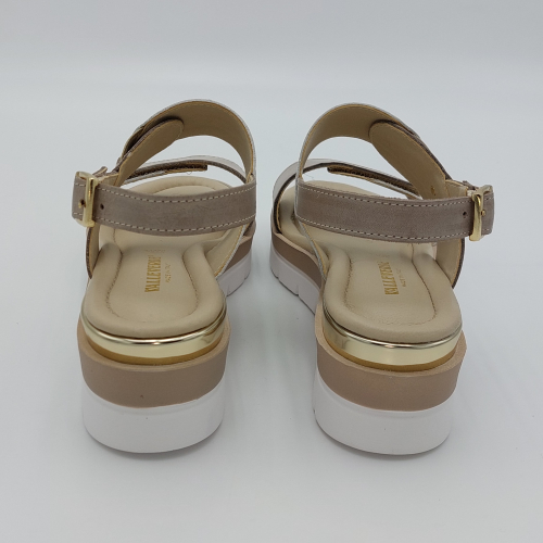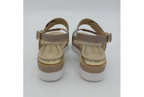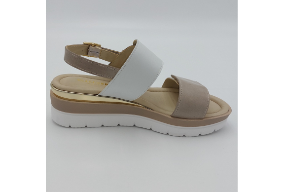 S andalo con due fasce incrociate grigio chiaro, Chiuso con elastico sul tallone. Sottopiede in pelle con tecnologia Shock Absorbing, zeppa in...