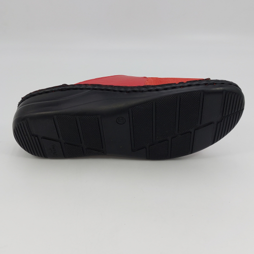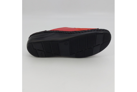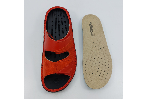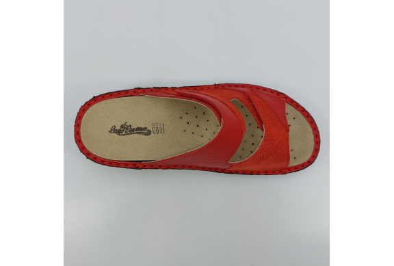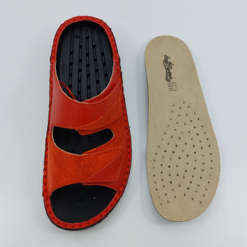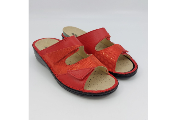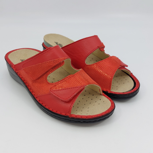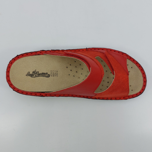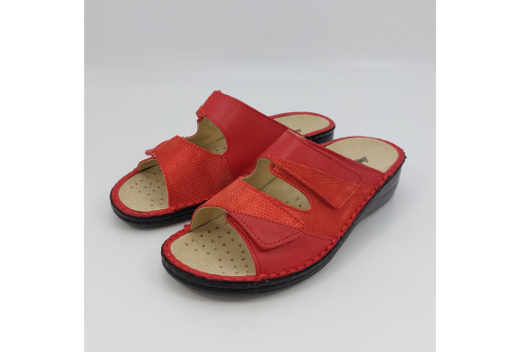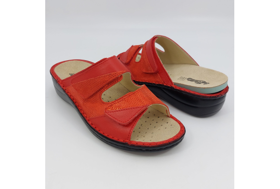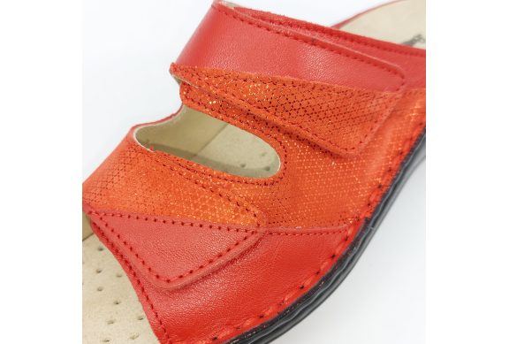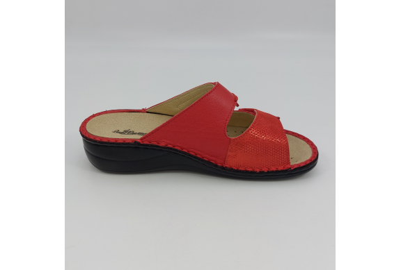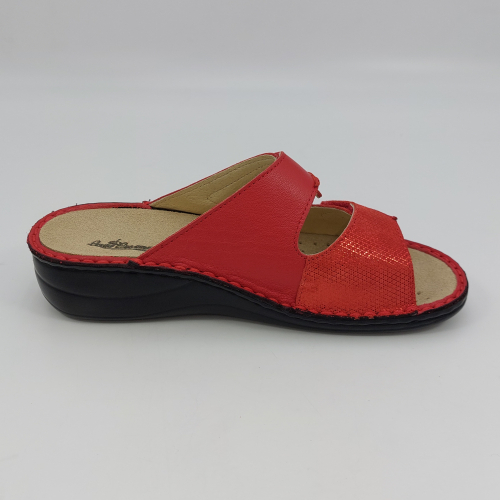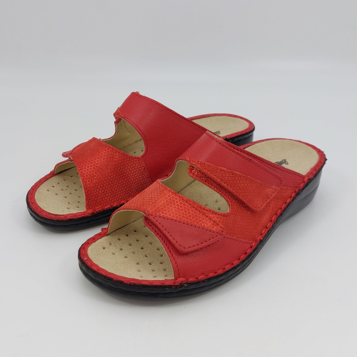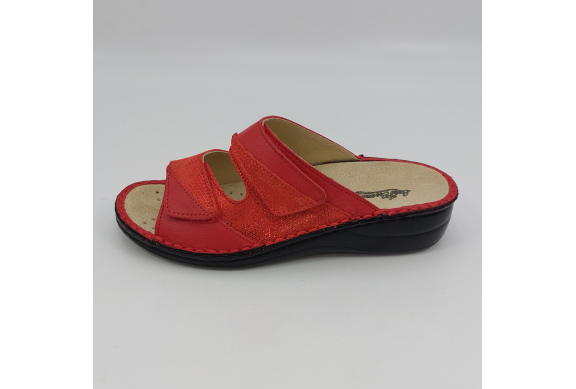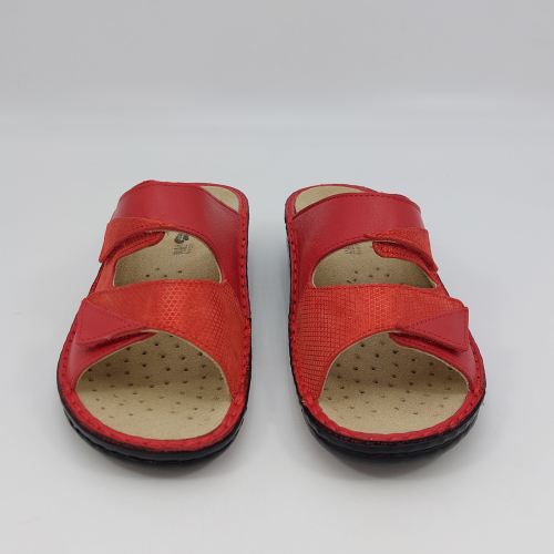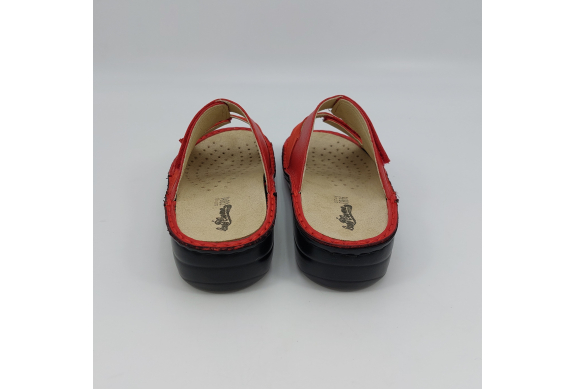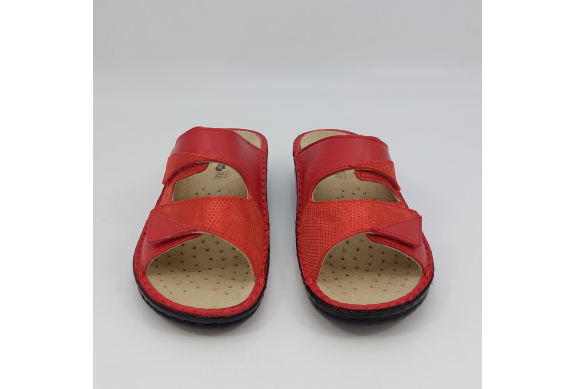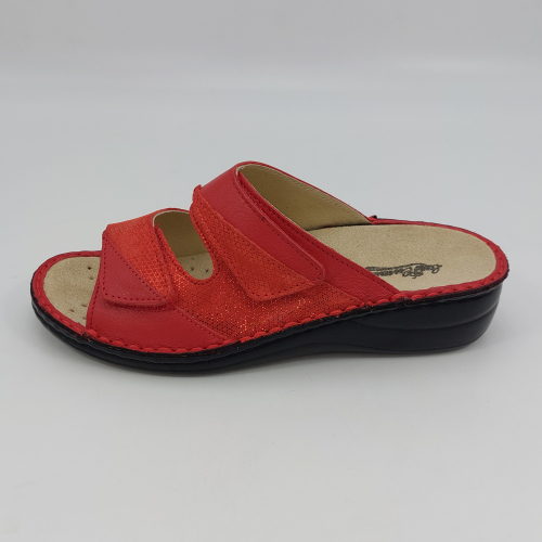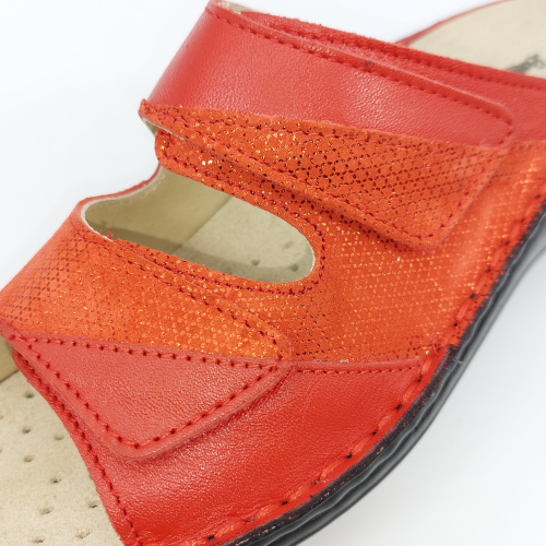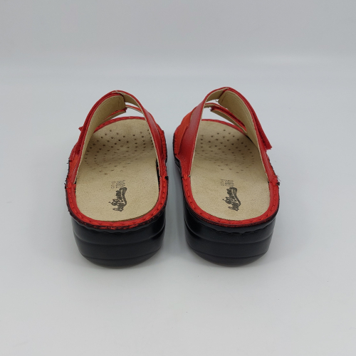 Ciabatta sanitaria in pelle rossa, plantare anatomico estraibile, strappi regolabili per una calzata confortevole e perfetta. Suola in gomma alta 4 cm. Lavorazione Made in Italy