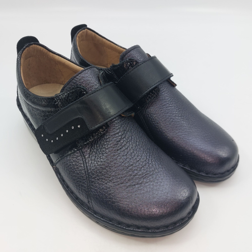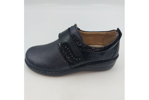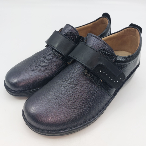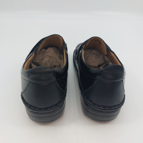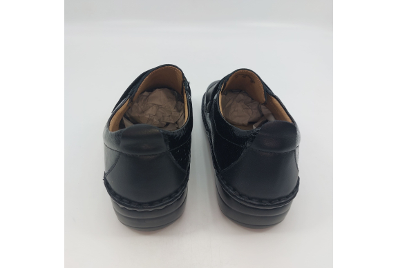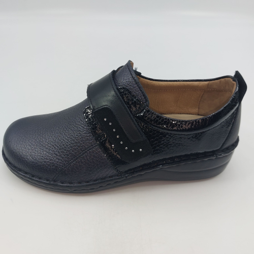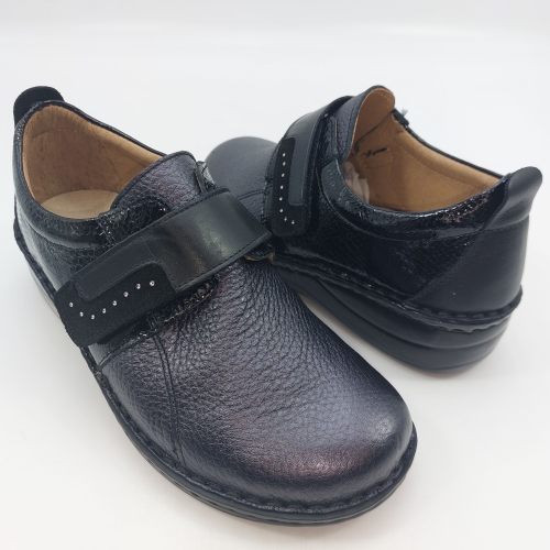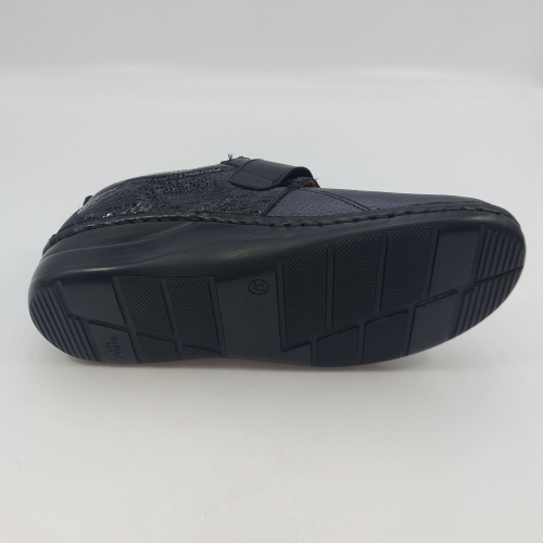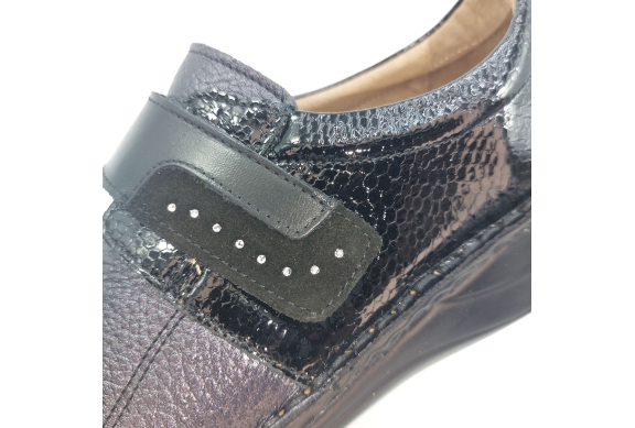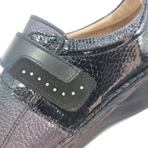 Questo modello La plume è una scarpa sanitaria realizzata in naplack stampa pitone nera e morbidissima pelle di cervo antracite. Predisposta per alloggiare un plantare personalizzato. Ottima anche per piedi particolarente difficili. È dotata di strappo sul collo del piede per favorire una calzata rapida e un ottima tenuta. Plantare anatomico estraibile in lattice e DryGo! un innovativo materiale che assorbe il sudore per un benessere superiore. Suola in gomma alta 4 cm. Lavorazione artigianale completamente fatta in Italia.