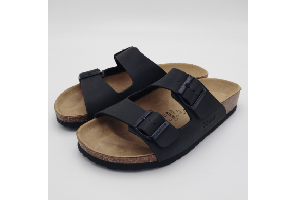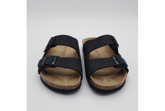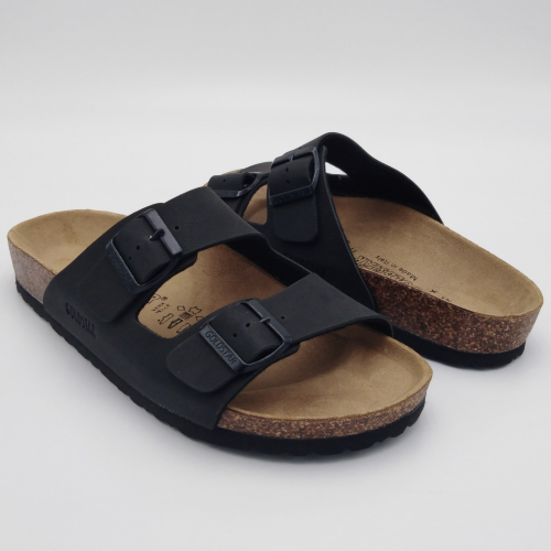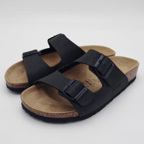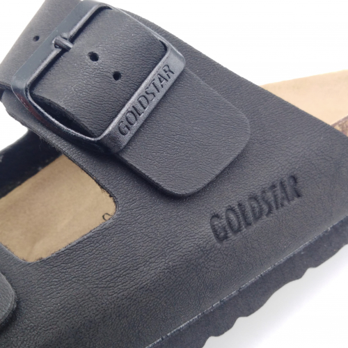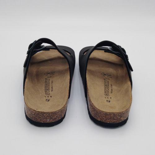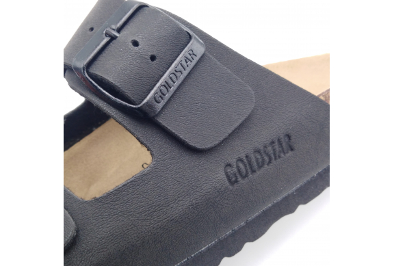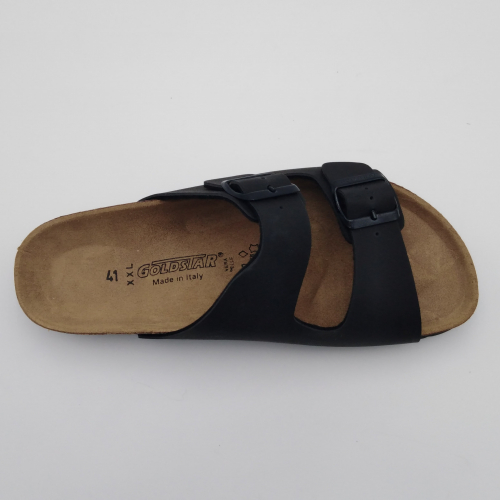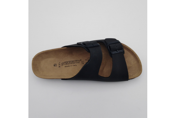 Ciabatta due fibbie di Gold Star, un classico modello sobrio con due cinturini dal design intramontabile. Suola in EVA, tomaia in Naturtex dermoaffine e resistente, plantare XXL in sughero e lattice. Made in Italy