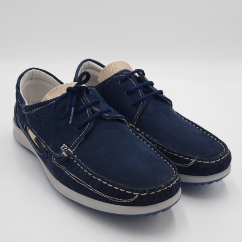 Scarpa allacciata stile barca in morbido e pregiato nabuk, sottopiede anatomico estraibile e fodera in pelle, suola in gomma antistatica ed antiscivolo. Materiali di prima scelta e le linee casual sempre attuali, fanno di questa scarpa la perfetta compagna per la stagione calda. Made in Italy