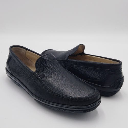 Mocassino uomo in morbida pelle nera, sottopiede e fodera in pelle, suola driver in gomma antiscivolo. Materiali di prima scelta e linea semplice e pulita, fanno di questa scarpa la perfetta compagna per la stagione calda. Made in Italy