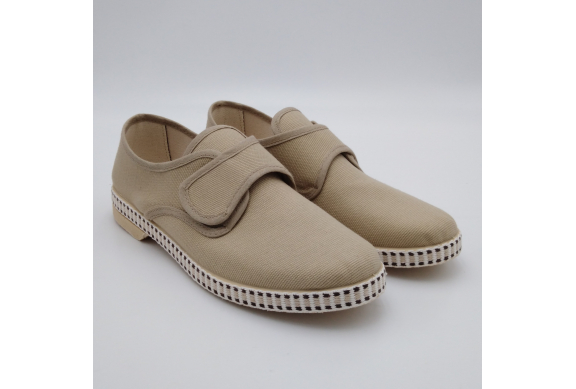 New Falcon realizza questa pantofola estiva in tela beige con strappo regolabile per calzarla velocemente, tomaia, fodera e sottopiede in cotone. Suola in gomma vulcanizzata leggera, flessibile e antiscivolo profilata in corda. Lavorazione artigianale completamente fatta in Italia