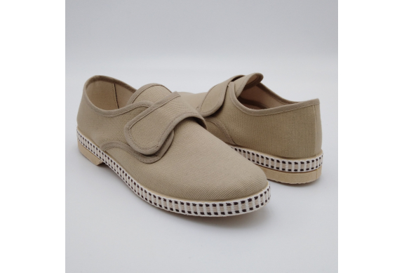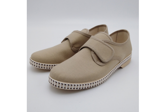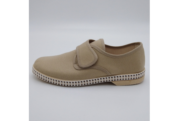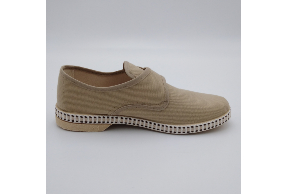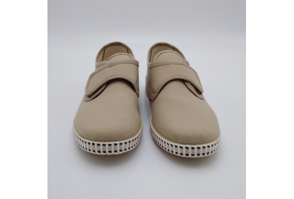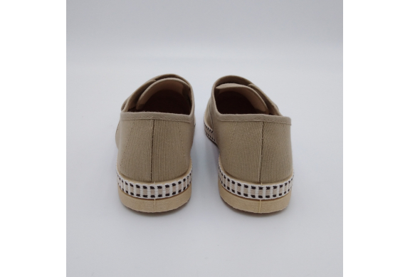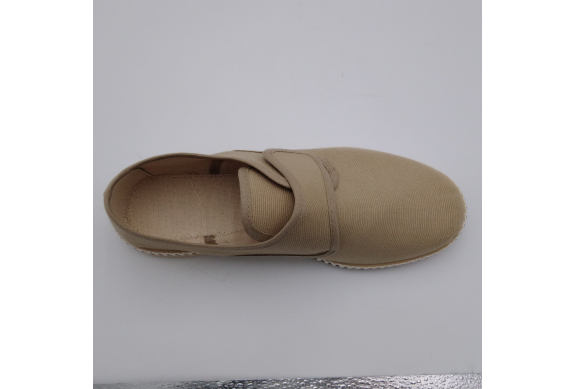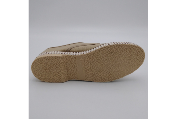 Pantofola in tela beige slip on, tomaia in tessuto, fodera cotone e sottopiede in spugna. Suola in gomma vulcanizzata antiscivolo. Made in Italy...