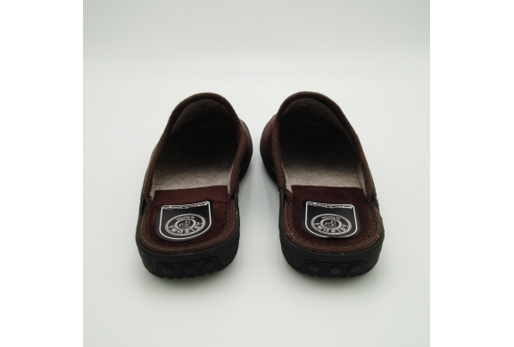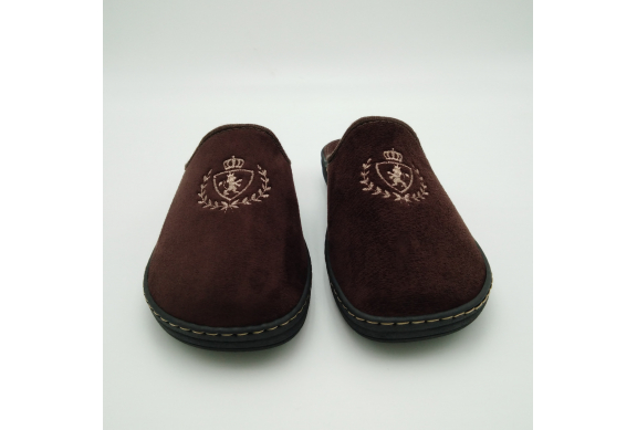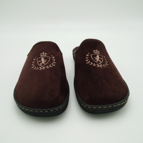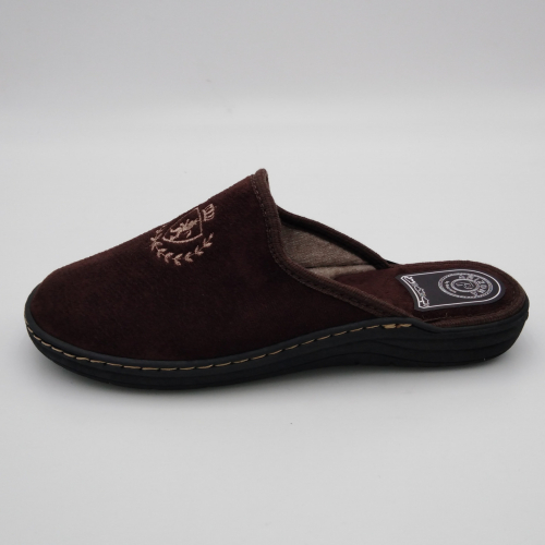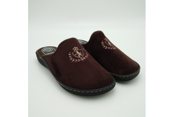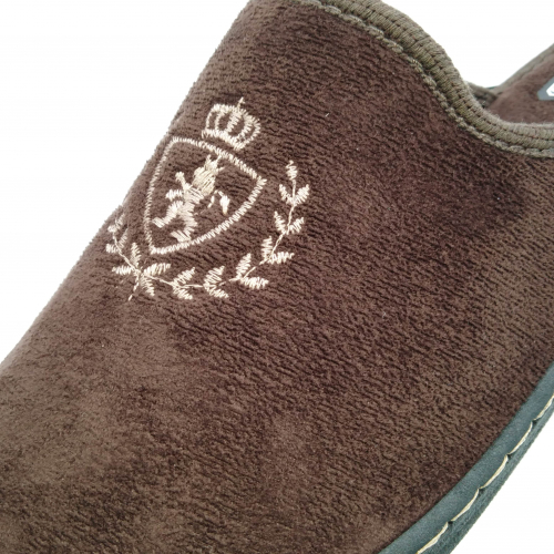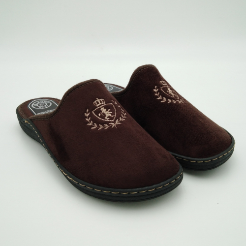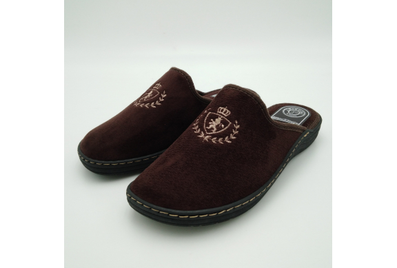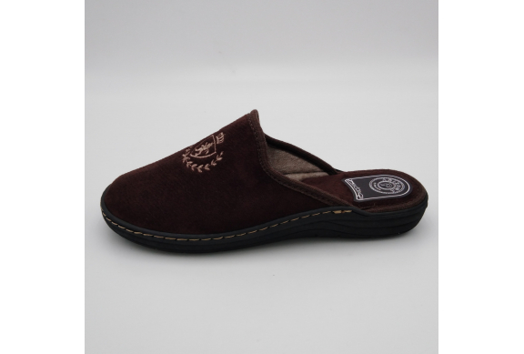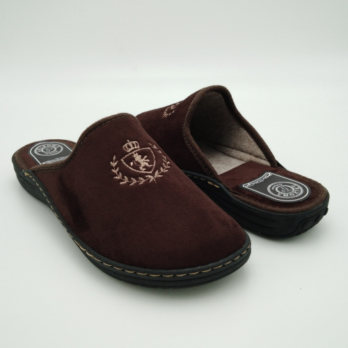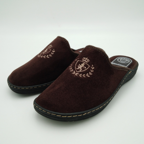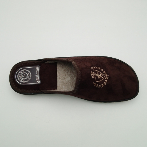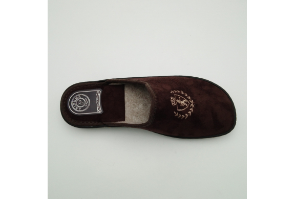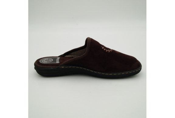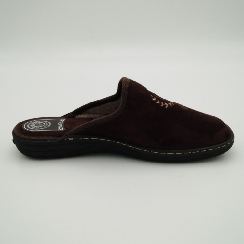 Ciabatta uomo in caldo tessuto marrone, sottopiede e fodera in lana. Suola in gomma leggera flessibile e antiscivolo.