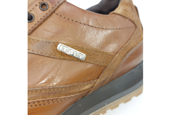 Scarpa stringata in morbida pelle marrone, sottopiede anatomico estraibile e fodera in pelle, suola in gomma antiscivolo. Materiali di prima...