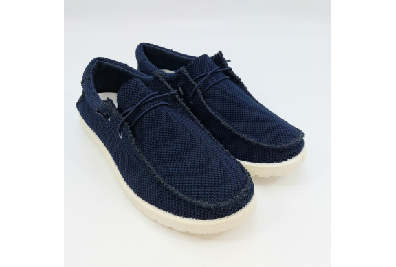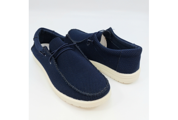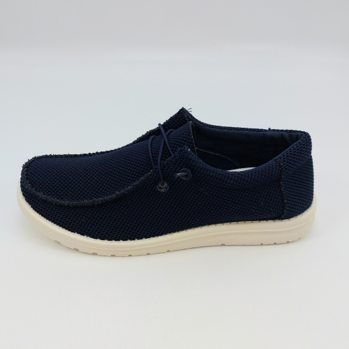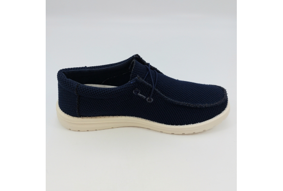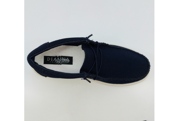 Deanna presenta questa scarpa modello mocassino tipo Dude in cotone blue. Chiusura con lacci elastici regolabili. Fodera in tessuto, con plantare estraibile in tessuto. Suola in gomma ultraleggera e flessibile. Una perfetta combinazione di massimo comfort e ultima moda.