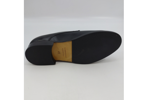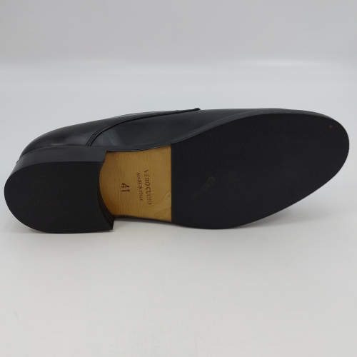 Scarpa uomo modello mocassino con nappine in pelle spazzolata nera, fodera in pelle, suola in Vero Cuoio con mezza gomma antiscivolo e tacco 3 cm....