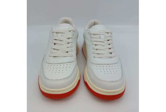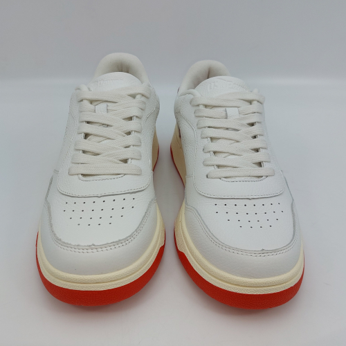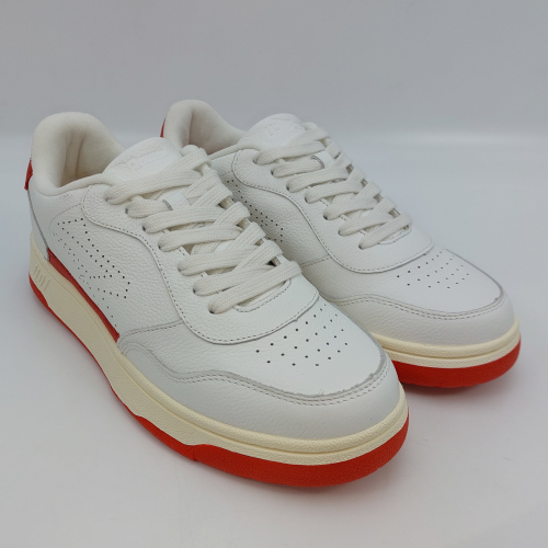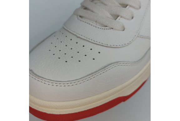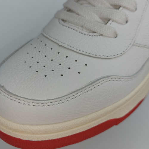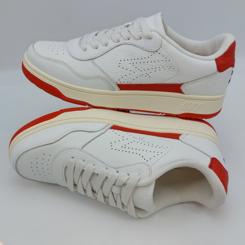 Le U.01 Sparrow di U-Power sono sneaker dal design sportivo, realizzate con tomaia in pelle di vitello pieno fiore bianca e dettagli rossi, linguetta in pelle con logo. Allacciatura sette fori. Interno in tessuto con plantare anatomico estraibile in memory foam, collare imbottito, suola a cassetta in gomma naturale interamente cucita alla tomaia. Comode e leggere, hanno un design classico ispirato al tennis anni '80 che permette di abbinarle a diversi tipi di outfit. Sono scarpe che donano comfort al piede e al look una linea moderna.