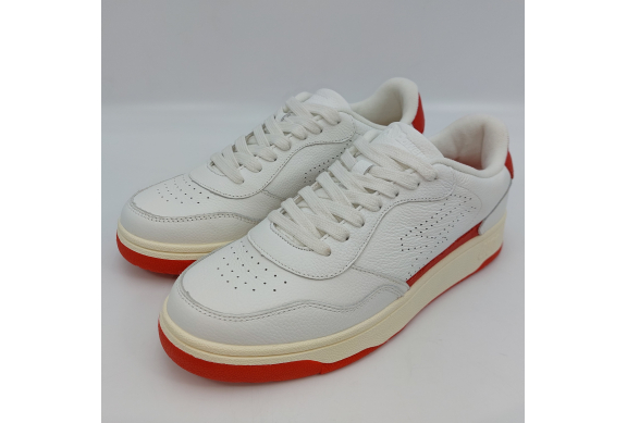 Sneaker in pelle bianca, tallone nero, tipo Mc Queen, fodera pelle, plantare anatomico estraibile in pelle, suola in gomma cucita alla tomaia,...