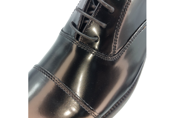 Scarpa uomo modello Derby con lacci in pelle di vitello abrasivato grigio, fodera in pelle sottopiede in cuoio, suola in Vero Cuoio. Made in Italy.
