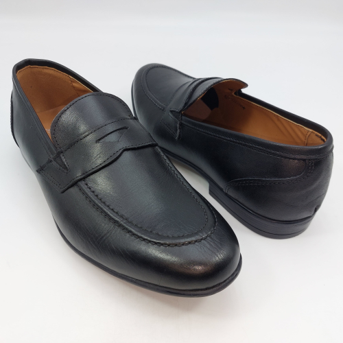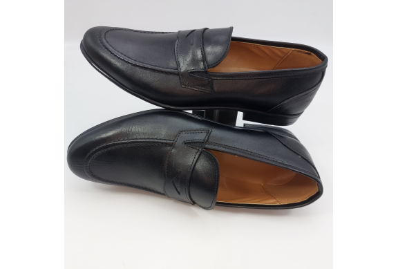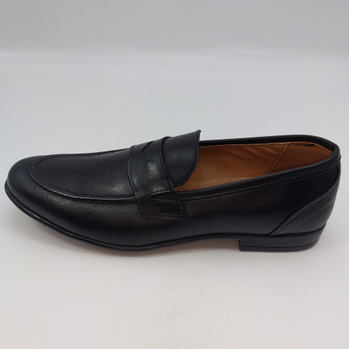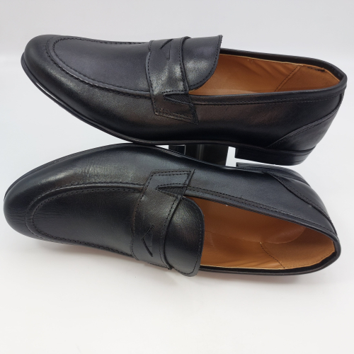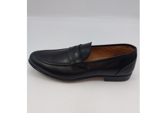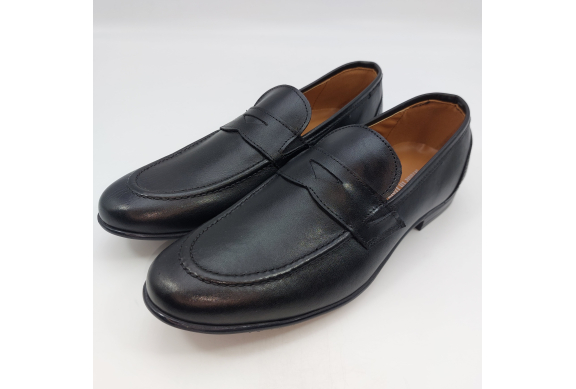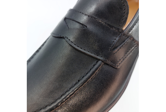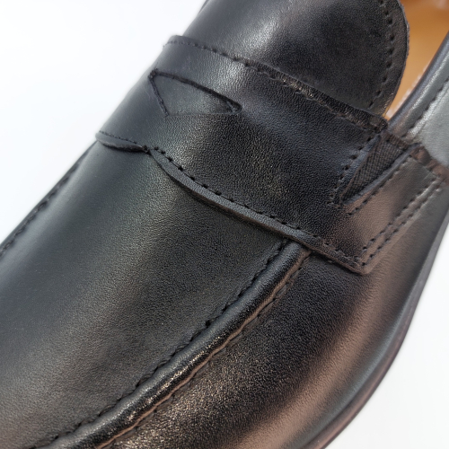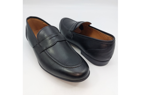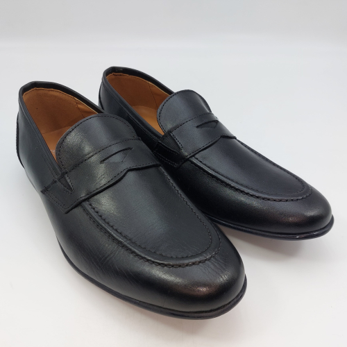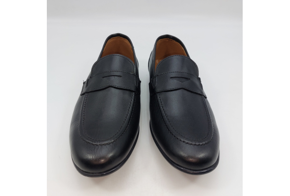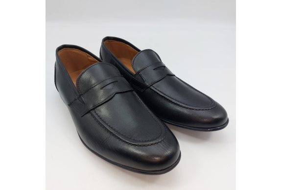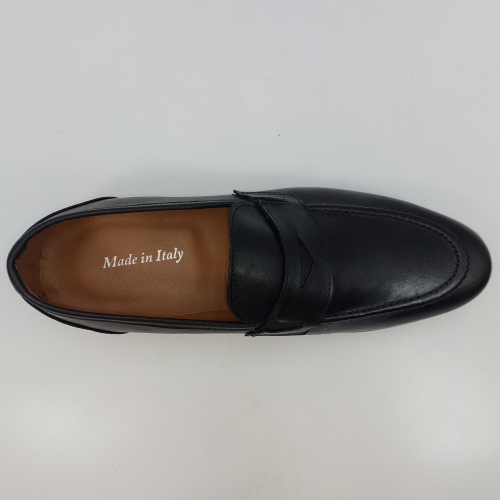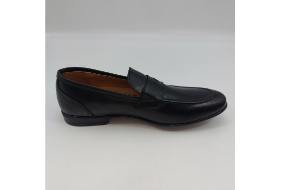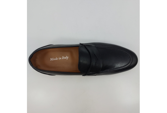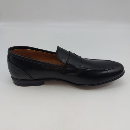 Mocassino in morbida pelle nera, fodera e sottopiede in pelle. Suola gomma flessibile e leggera. Design classico. Made in Italy