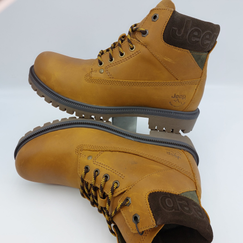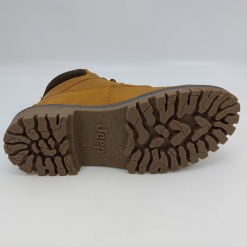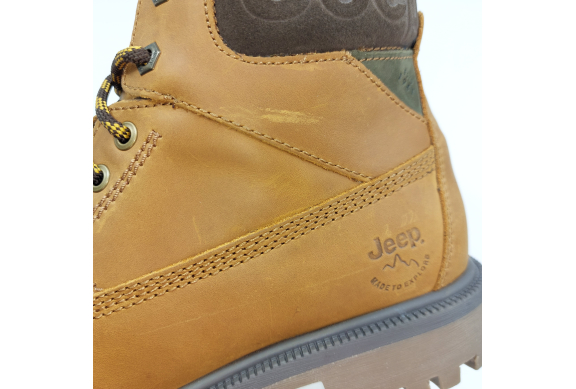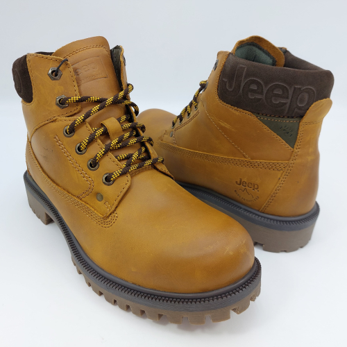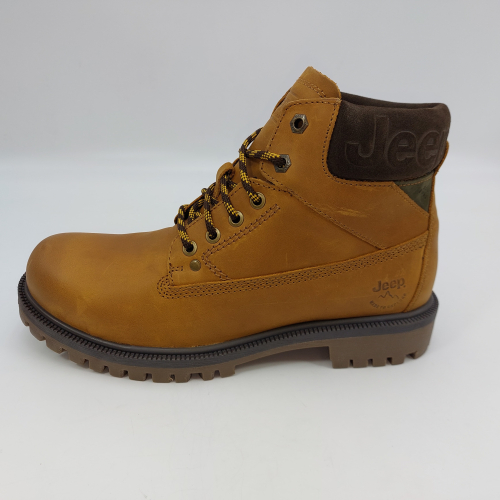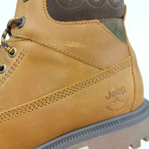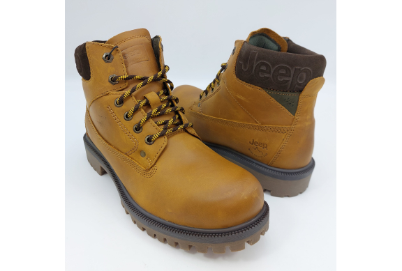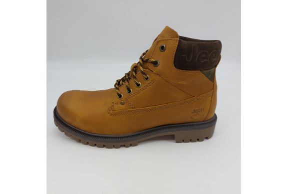 Jeep presenta questo scarponcino in nabuk ingrassato camel, collarino imbottito in camoscio, con logo in evidenza, cuciture a vista, logo su linguetta. Allacciatura sei fori, fodera e sottopiede in morbido e caldo tessuto, suola in gomma carrarmato. Adatto per varie occasioni dall'escursione alla serata trendy.